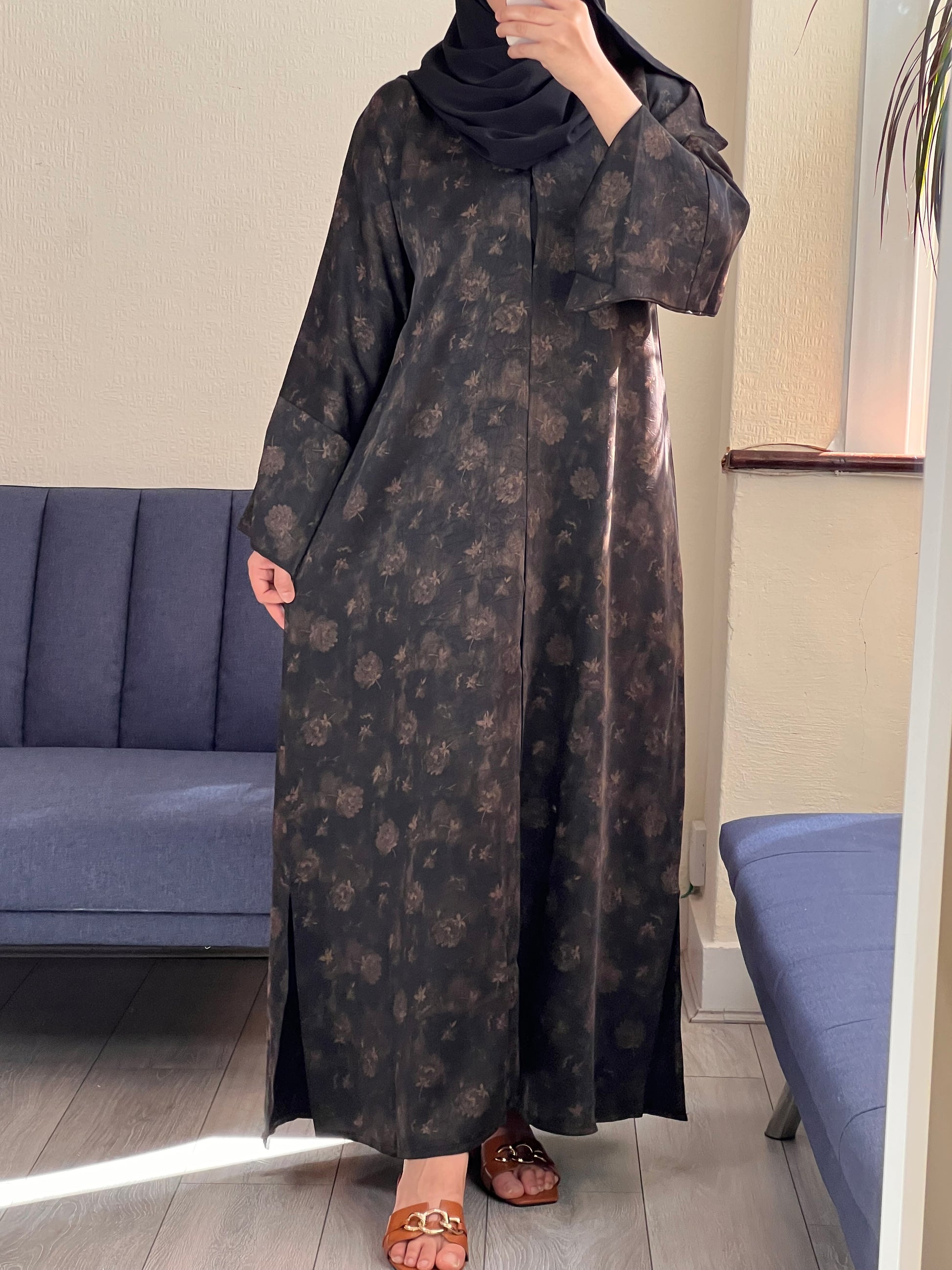 Floral black abaya